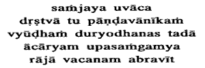"Having seen the army of the pandavas drawn up in battle array King Duryodhana