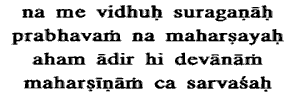 2. Neither the hosts of the Gods nor the Great Rishis know my origin; for I am the source of all the Gods and the Great Rishis. Prabhava (interpreted as origin) may also mean · Great Lordly Power: Rishis: such as Bhrigu. Moreover,