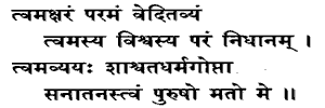 Thou art the ancient Purusha, I deem.To be known: by seekers of liberation.