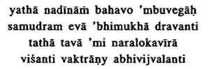 28. As many torrents of rivers flow direct towards the sea, so do these heroes in the world of men enter Thy flaming mouths. These: such as Bhishma. Why and how do they enter ?Arjuna says: