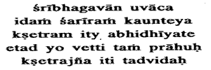 body, O son of Kunti, is called Kshetra ; him who knows it, they who know