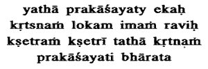sun illumines all this world, so does the embodied One, O Bharata, illumines