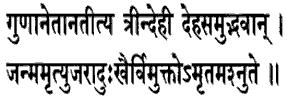 The wise man crosses, while still alive, beyond the three gunas which constitute