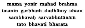 termed Brahman. In that Great Brahman I place the germ, the seed of the