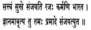 to happiness, Rajas to action, O Bharata, while Tamas, enshrouding wisdom,