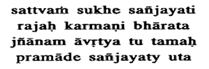 itself, Sattva produces its own effect, knowledge and happiness: Similarly,