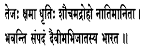 one born for a divine lot, O Bharata · Tejas means energy, not brightness
