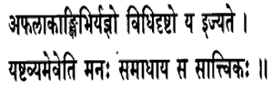 is Sattvic which is offered by men desiring no fruit, as enjoined in the