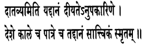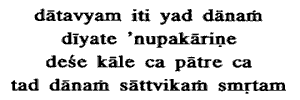 in place and in time and to a worthy person, that gift is held Sattvic.