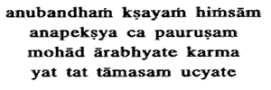 injury, and ability, that is declared to be Tamasic. Loss: Loss of power and