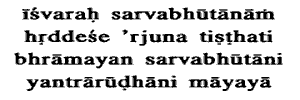 on a machine. The Lord (Isvara): the Ruler, Narayana. Arjuna pure in the internal