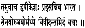 was grieving in the midst of the two armies, O descendant of Bharata, Hrishikesa