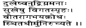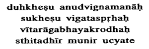 heart is not distressed in calamities, from whom all longing for pleasures