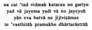 conquer them or they will conquer us. Even the sons of Dhritarashira, after