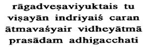 peace, who, selfcontrolled, approaches objects with the senses devoid of