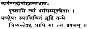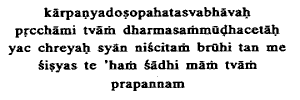 7. My heart contaminated by the taint of helplessness, my mind confounded about Dharma, I ask Thee: Tell me what is absolutely good. I am Thy pupil. Instruct me, who have sought Thy grace.