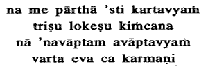 whatsoever to achieve in the three worlds, O son of Pritha, nor is there