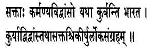 men act attached to work, O Bharata, so should the wise man act, unattached