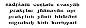 (their nature ; what shall coercion avail ?Nature (prakriti) is the samskara