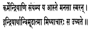 the organs of action, sits thinking in his mind of the objects of the senses,