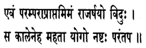 of time, has been lost here, O harasser of foes.This Yoga, thus handed down