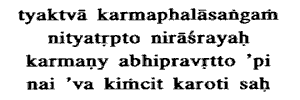attachment for the fruits of action, ever content, dependent on none, though