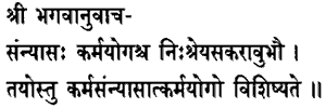 of action.Samnyasa and Karmayoga, renunciation of actions and performance