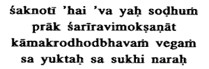 impulse of desire and anger, he is a Yogin, he is a happy man.while still