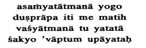is hard to attain for a man of uncontrolled self ; but by him who (often