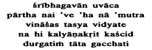 Lord said:O Partha, neither in this world nor in the next is there destruction