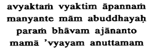 regard Me as the unmanifested coming in manifestation, knowing not My higher,