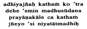 Madhusudana, and how at the time of death art Thou to be known by the selfcontrolled