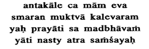 at the time of death, thinking of Me alone, leaves the body and goes forth