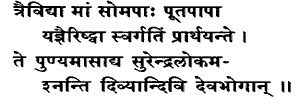 three Vedas, the soma drinkers, purified from sin, worshipping Me by sacrifices,