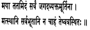 I do not dwell in them.All this world is pervaded by My Highest Being, My