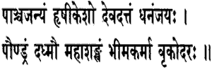 the Panchajanya and Dhananjaya (Arjuna) blew the Devadatta, and Vrikodara