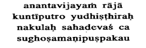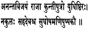 the son of Kunti, blew the Anantavijaya; Nakula and Sahadeva blew the Sughosha