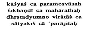 of Kasi, an excellent archer, Sikhandin, the master of a great car, Dhrishtadyumna