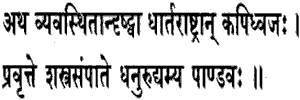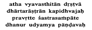 the discharge of weapons was about to begin, Arjuna, the son of Pandu, whose