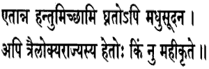 slayer of Madhu, I do not wish to kill, though they kill me, even for the