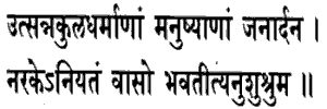 O Janardana, that necessary is the dwelling in hell of the men whose familydharmas