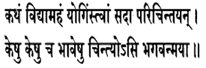 17. How shall I, ever meditating, know Thee, O Yogin ; in what several things, O Lord, art Thou to be thought of by Me ?