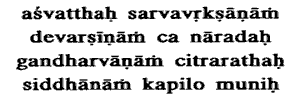 (I am the Asvattha, and Narada of divine Rishis, Chitraratha of Gandharvas,
