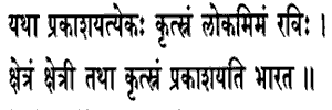 sun illumines all this world, so does the embodied One, O Bharata, illumines