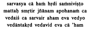 of the Vedanta as well as the knower of the Vedas.I dwell in the hearts