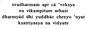 fact that fighting is a Kshatriyas duty, you ought not to swerve from that