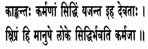 12. They who long after success in actions sacrifice here to the Gods: for, soon in this world of man accrues success from action.They who long after success in action sacrifice to the Gods, such as Indra and Agni. The sruti says:He who, on the other hand, worships a separate God, thinking, He is separate from me and I am separate from Him he knows not. He is to the Devas as cattle (to men)For, quickly is the fruit of action reaped in this world of men by those who, with selfish ends in view, sacrifice to eternal Gods, performing the works enjoined on them according to their caste (varna) and order (asrama). lt. is for this world of men that Vedic injunctions are meant by the expression soon in this world of man the Lord implies that even in other worlds actions produce results: the only difference being that it is only to this world of men that injunctions based upon castes and religious orders apply: Caste, A Divinely ordered human institution. What is the foundation of the law that the respective duties of the several castes and religious orders obtain only in this world of men, but not in other worlds for the question may be put thus: It has been said that men, split up into the communities of several castes and orders (varnas and asramas), should follow Thy path in all things. why should they necessarily follow Thy path only, but not that of any other ?The answer follows: