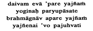 by the Self.Some yogins, devotees to action, perform only sacrificial rites