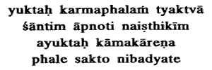 one, abandoning the fruit of action, attains the peace born of devotion.