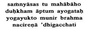 (raramarthika) Samnyasa ; and Yoga is the Vedic KarmaYoga (performance of
